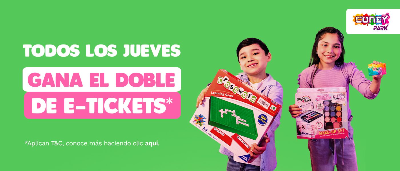 La tarjeta Coney es tu pasaporte a la diversión, con ella podrás disfrutar de nuestros juegos y atracciones. Funciona como la llave que le abre la puerta a la aventura y la magia de cada uno de nuestros parques. (Disponible sólo en locales Coney Park)